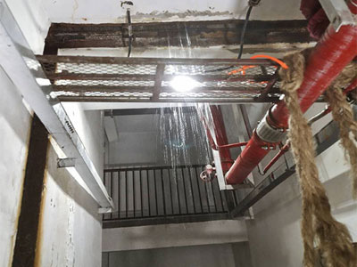 采用先注浆止水,后用高分子密封材料柔性保护,最后采用刚性保护的措施。治理渗漏的同时,保证变形缝是伸缩变形功能。